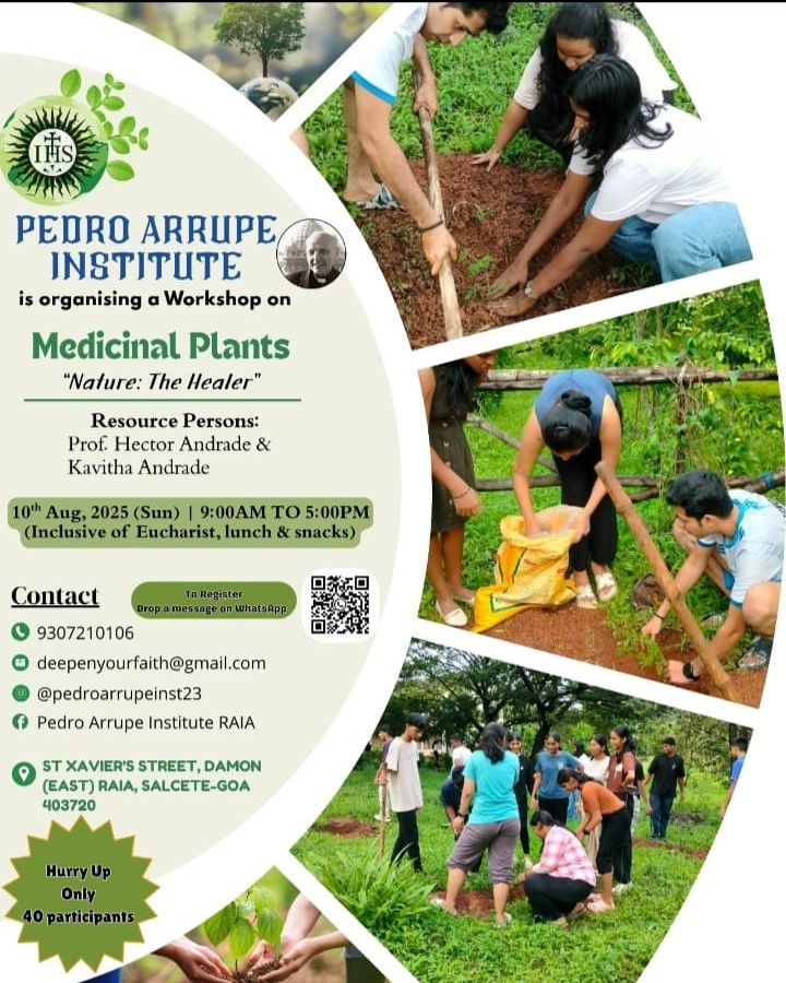 The Pedro Arrupe Institute is organizing a day-long workshop on Medicinal Plants titled “Nature: The Healer” on 10th August 2025 (Sunday) from 9:00 AM to 5:00 PM at St. Xavier’s Street, Damon (East), Raia, Salcete-Goa.