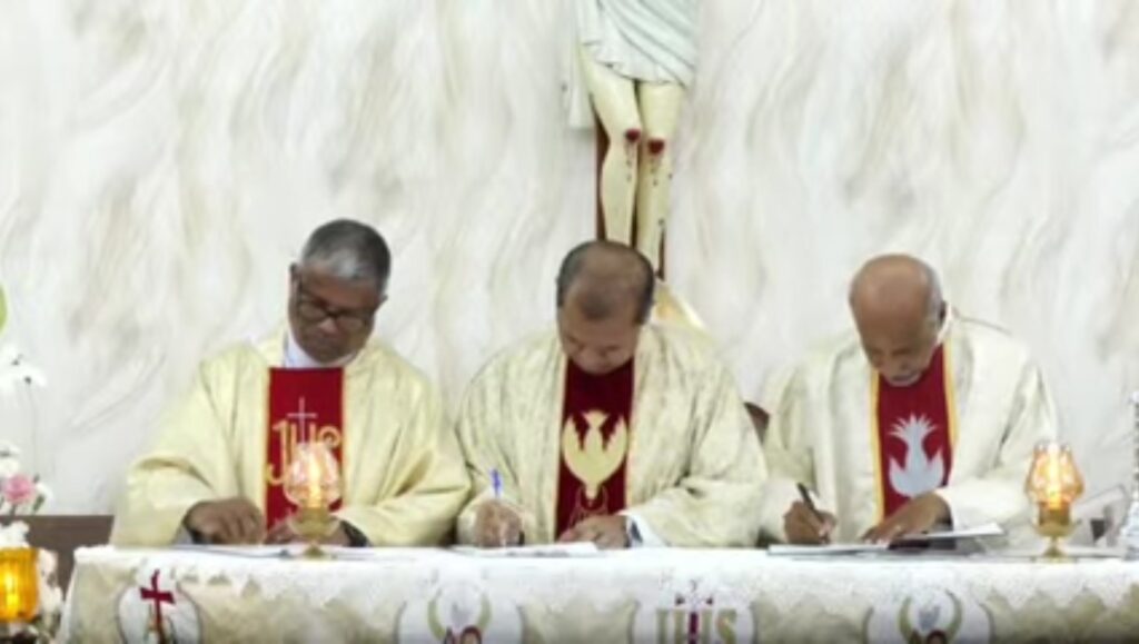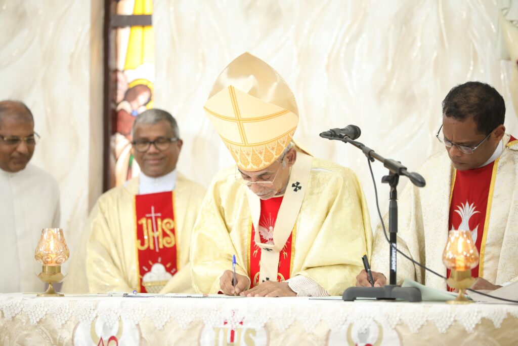 The erection letter was read by Fr. Romeo Monteiro and the minutes were signed by Archbishop Filipe Neri Cardinal Ferrao
