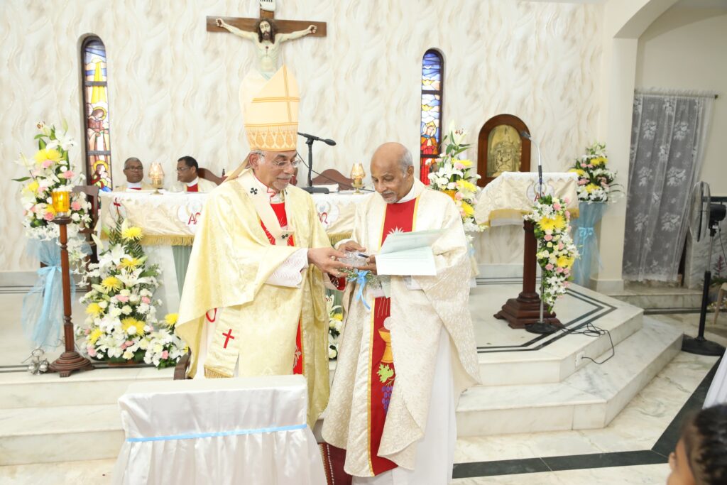 The Archbishop Congratulated the Parochial administrator Fr. Zeferino D’souza, the Parishioners and all previous chaplains for this great milestone of faith and invited the faithful to emulate Mother Mary, Star of the Sea who will guide their journey of faith. Fr. Edmund Antao the Parish Priest also conveyed his congratulatory words and best wishes to the Parishioners of Miramar.